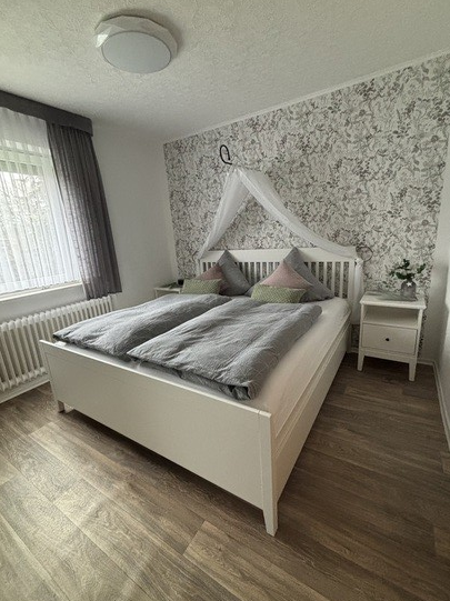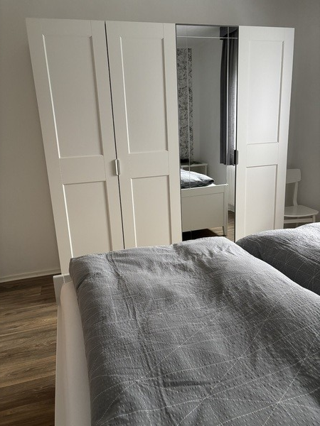 Doppelbett inkl. Bettwäsche, großzügiger Schlafzimmerschrank